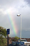 fate or coincidence? a rainbow and a sign pointing up stating "exit"