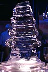 one of the (slightly melted) sculptures of a tree made out of ice on the tables