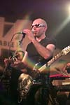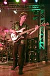 stu is pleased with himself having successfully reflected the light off his bass and into mike manning's eyes across the room